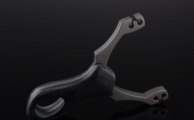 302黑锋影悍马弹弓 材料:合金 表面:黑钛 柄材:两边夹黒木 包装:纸盒包装 附件:顶级天然乳胶管、纯牛皮兜。