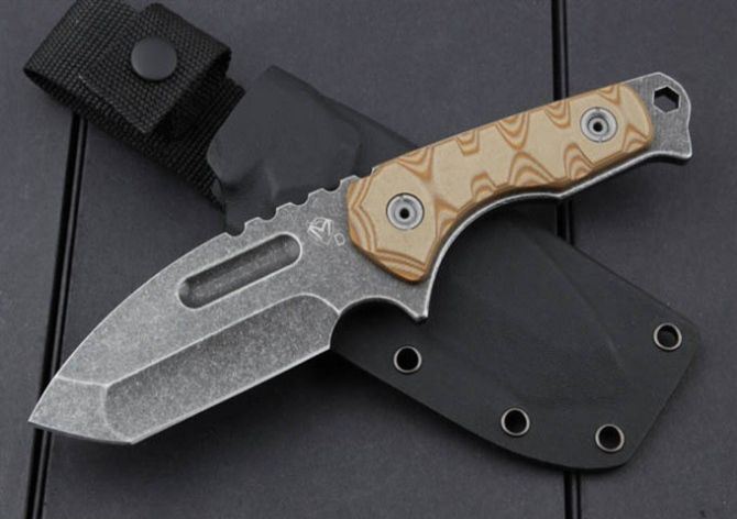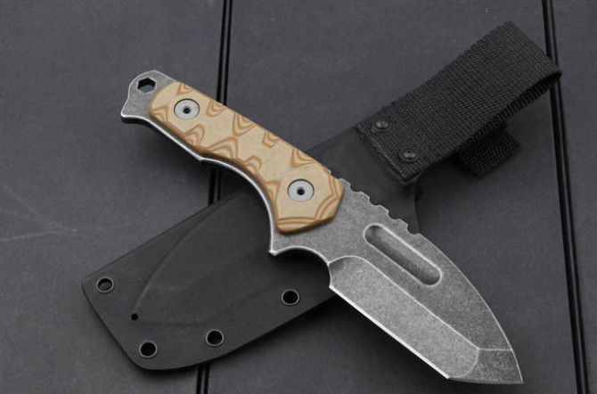 全 长:230mm 刃 长:110mm 柄 长:120mm 刃 宽:45mm 刃 厚:5.1mm 刃 材:5Cr13Mov 重 量:455g(含包装) 硬 度:57HRC 表 面:石洗 柄 材:钢柄+G10 其 他:K鞘