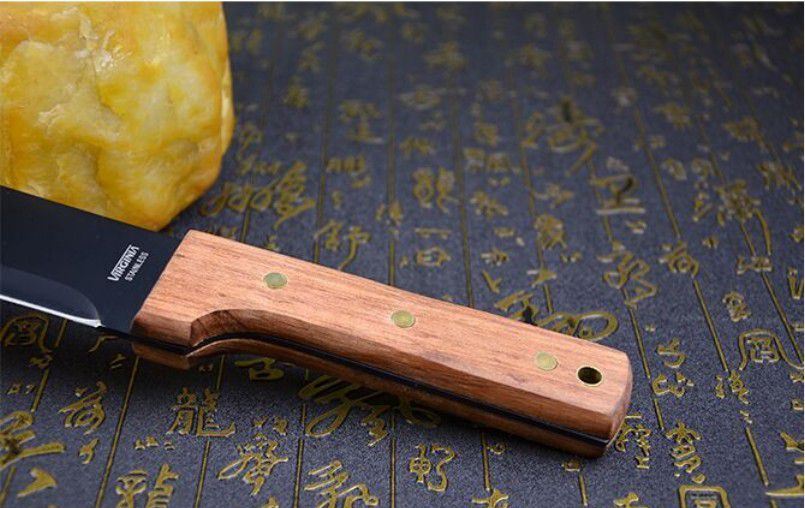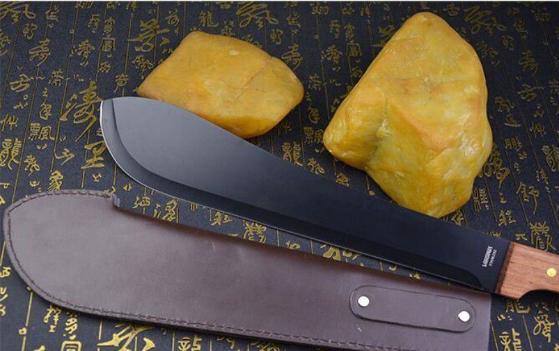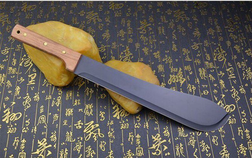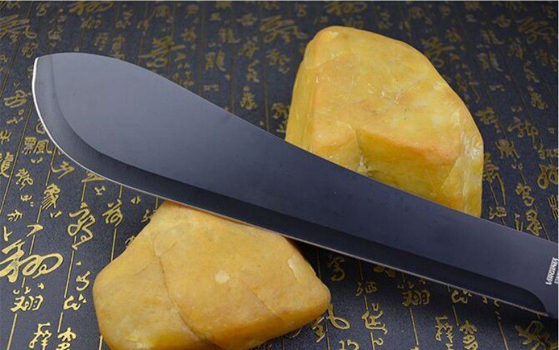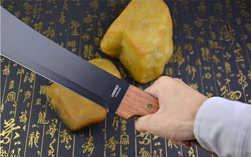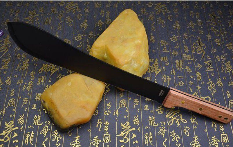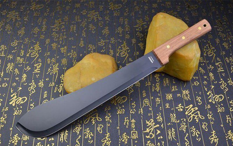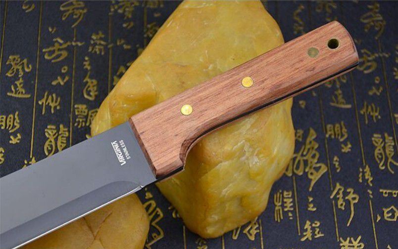 全长:49cm 刀刃:34cm 刃厚:0.34cm 刃宽:7CM 柄长:14cm 柄材:进口红木(手感非常好) 柄厚:3cm 材料:420(非常锋利) 硬度:57HRC 净重:500克 表面处理:黑氧化 结构:龙骨结构刀身贯穿刀柄,非常牢固 产地:国内代工
