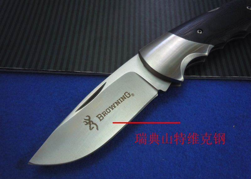 勃朗宁111D战术折刀(普通版) 全长:19.8CM 刃长:8CM 刃厚:0.3CM 刃材料:瑞典sandvik 12C 27不锈钢 硬度:57-59 柄材料:G10
