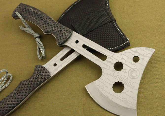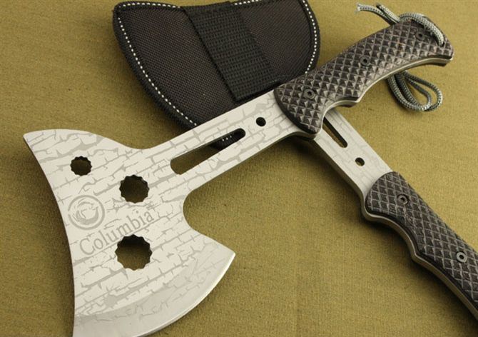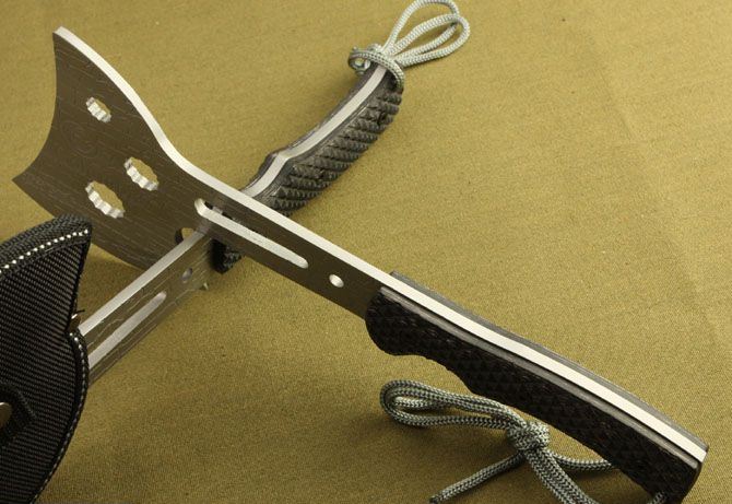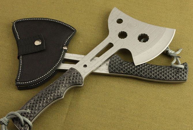 F005梅花斧头 全长:26.5 刃宽:9.5 刃长:12.5 柄长:12.5 刃材:440CM 柄材:彩木CM 重量:480g