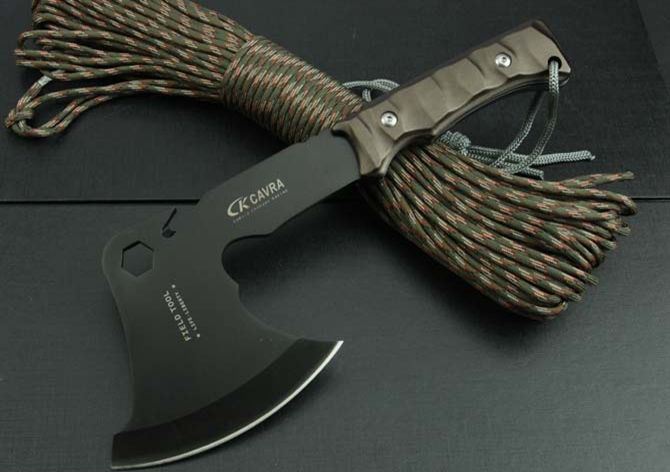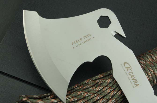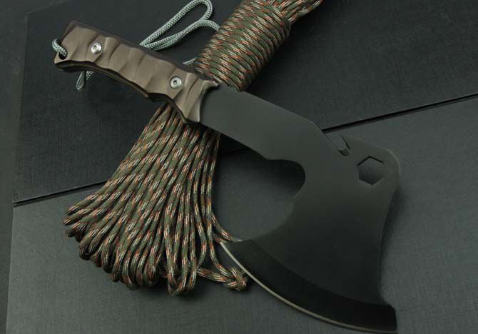 F08斧头(黑色、灰色) 全 长:275mm 刃 长:110mm 柄 长:120mm 刃 宽:102mm 刃 厚:5mm 刃 材:3Cr13Mov 重 量:520g(含包装) 硬 度:55HRC 表 面:氧化黑和灰色 柄 材:铝柄 锁 型:定锁 其 他:配尼龙套和白盒