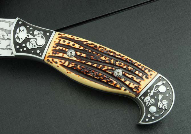 全 长:310mm 刃 长:138mm 柄 长:140mm 刃 宽:122mm 刃 厚:5.8mm 刃 材:3Cr13Mov 重 量:770g(含包装) 硬 度:55HRC 表 面:腐蚀纹 柄 材:骨片 锁 型:定锁 其 他:配尼龙套和白盒