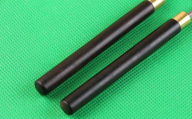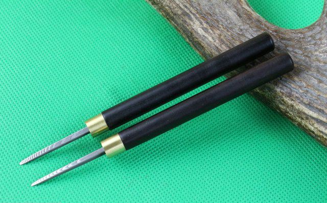 大马士革黑檀木小茶锥 全 长: 约14.6cm 刃 长: 4cm 刃 宽: 0.31cm(最宽处) 柄 长: 10.6cm 硬 度: 59HRC 刃 厚: 0.3cm 重 量: 90克(含包装) 表 面: 纯手工制造 刃 材: 大马士革 柄 材: 铜头+天然黑檀木 其 他: 大马士革钢花纹和把手木纹及颜色各异,以实物为准