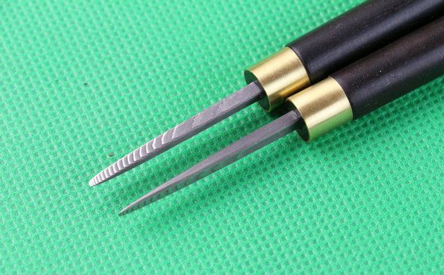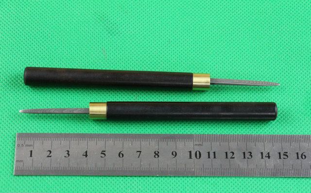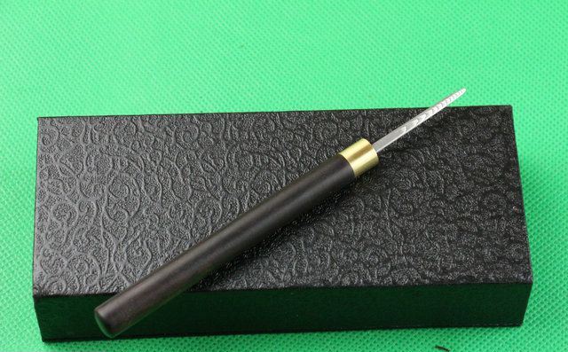 全 长: 约14.6cm 刃 长: 4cm 刃 宽: 0.31cm(最宽处) 柄 长: 10.6cm 硬 度: 59HRC 刃 厚: 0.3cm 重 量: 90克(含包装) 表 面: 纯手工制造 刃 材: 大马士革 柄 材: 铜头+天然黑檀木 其 他: 大马士革钢花纹和把手木纹及颜色各异,以实物为准
