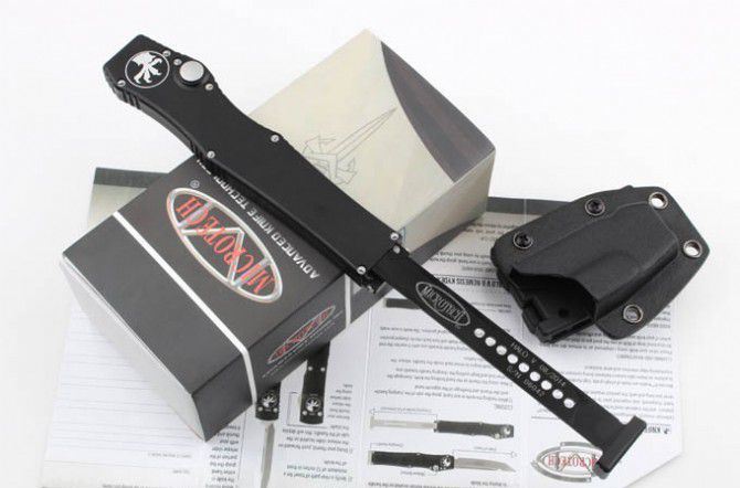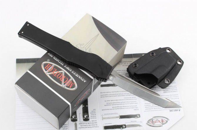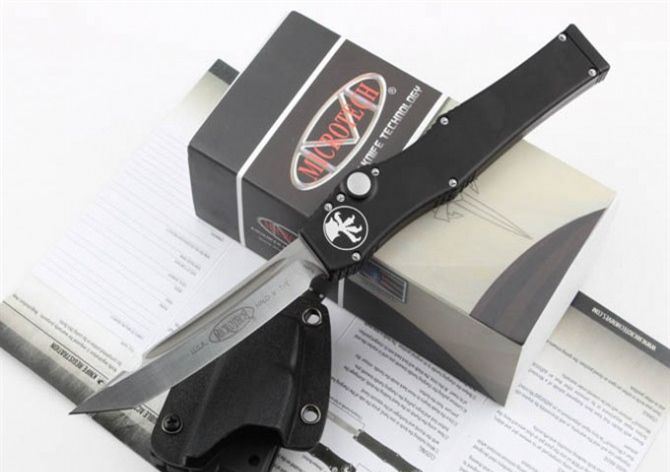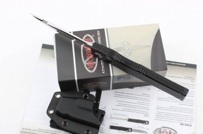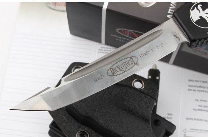 MICROTECH 美国微技术 150-10 HALO V 超弹力直跳 全 长:27.4 CM 材 质:ELMAX 刃 长:10.6 CM 刃 宽:1.98 CM 刃 厚:0.43 CM 柄 材:铝合金 刀 型:直跳 锁 定类型:按钮锁 重 量:148.8克 附 件:Kydex鞘,说明书,彩盒 整刀用,CNC,电脑锣,线切割制作而成,手工,精密度非常高,很值得收藏的一把刀