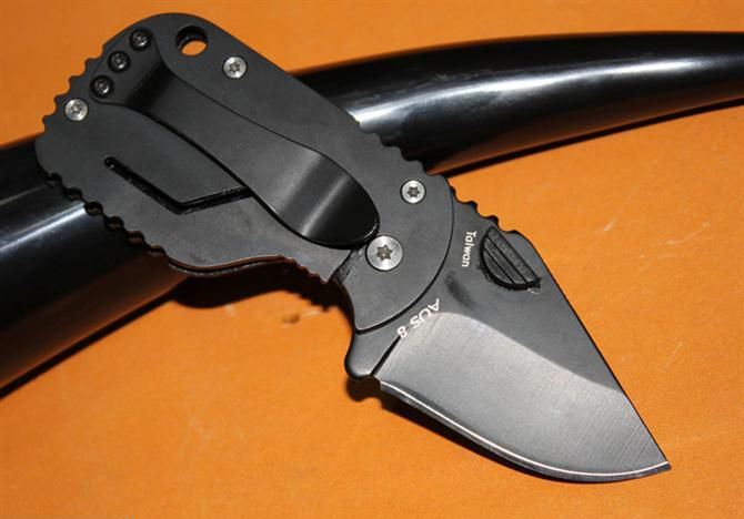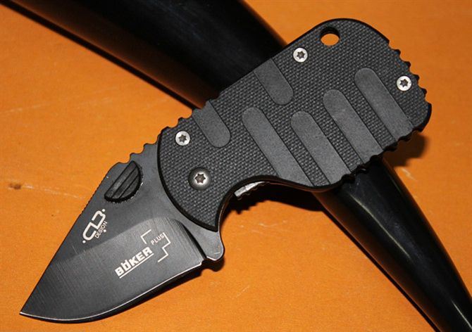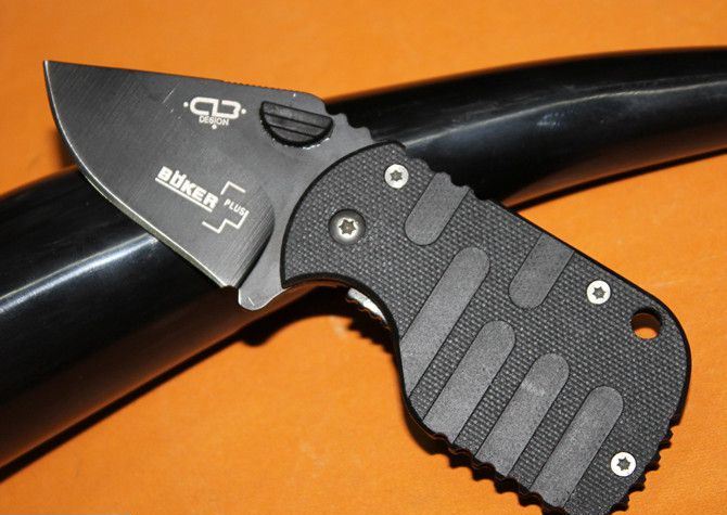 博克BOKER小黑猪 全 长: 11.2cm 刃 长: 4.5cm 刃 宽: 3.7cm 闭 合: 6.8cm 刃 材: 440 硬 度: 55 表 面: 黑钛 刃 厚: 0.2cm 柄 长: 6.8cm 柄 厚: 0.7cm 柄 材: 一面G10板,一面表面氧化黑 重 量: 112克 锁 闭: 线锁 其 他: 坚固背夹