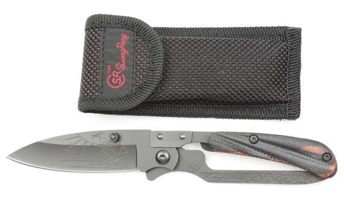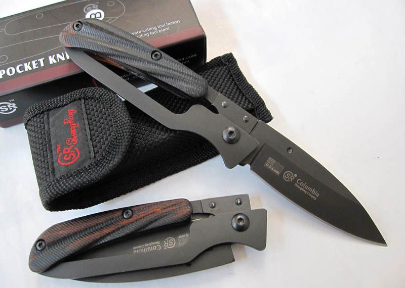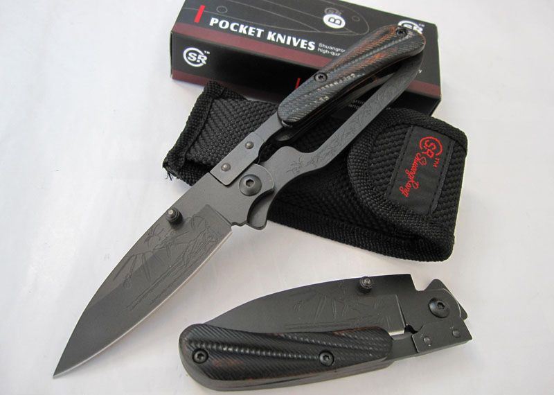 SR原野小折 全 长:18CM 刃 长:7.5CM 刃 宽:2.5CM 闭 合: 10.5cm(柄长) 刃 厚:0.3CM 硬 度: 56 HRC 刃 材: 440 表 面: 发黑 柄 材: 全钢,两边铆木片(木片经过电脑锣出花纹) 锁 定: 无锁,直接开合 重 量:80克 包 装:原品彩盒
