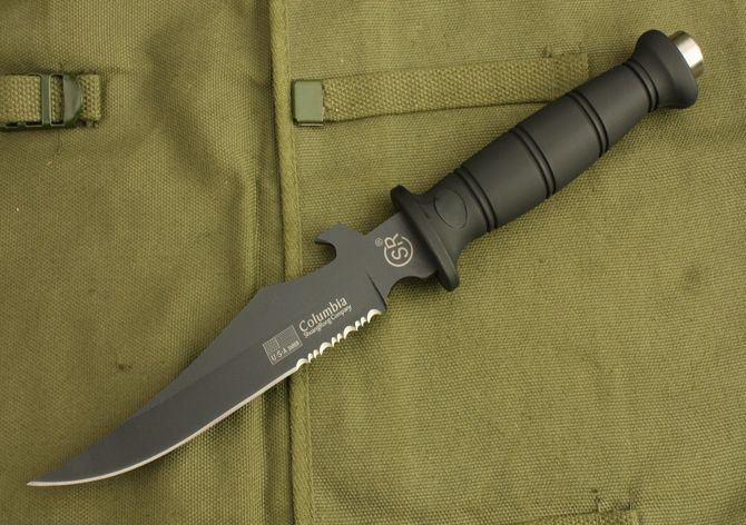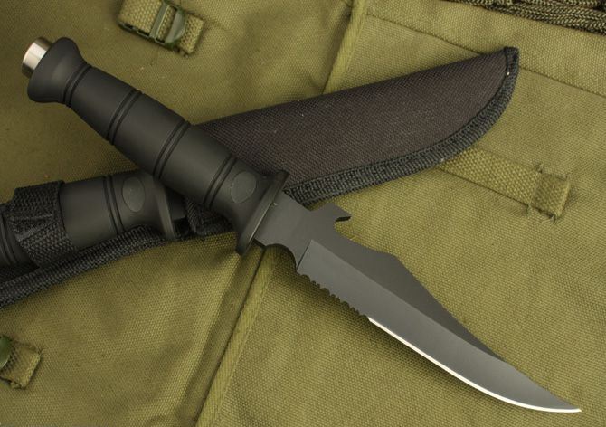 SR箭鱼 全 长: 28.5cm 刃 长: 16cm 刃 宽: 3.5cm(最宽处) 刃 材: 420 硬 度: 55 表 面: 黑漆 刃 厚: 0.4cm 柄 长: 12.5cm 柄 厚: 2.5cm 柄 材: 橡塑(手感很好) 重 量: 180克
