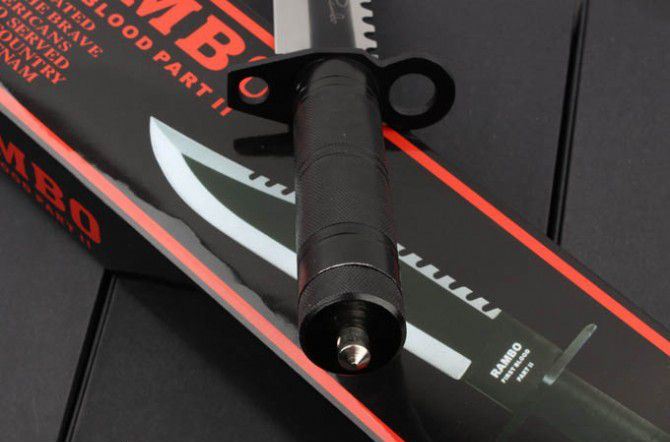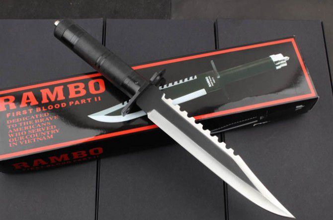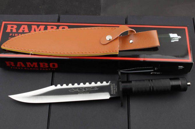 手签版-铁柄兰博2号刀 全 长:380mm 刃 长:205mm 柄 长:150mm 刃 宽:36mm 刃 厚:4mm 刃 材:3Cr13Mov 重 量:500g(含包装) 硬 度:55HRC 表 面:黑 柄 材:铁柄 锁 型:定锁 其 他:配硬纸盒和人革套
