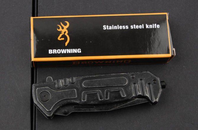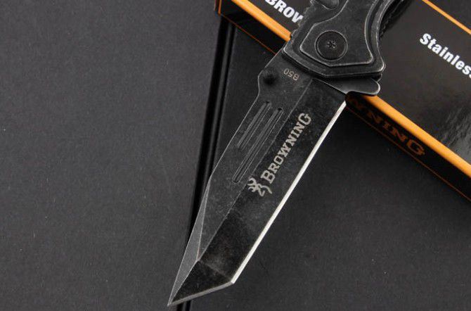 勃朗宁B50快开折刀 全 长:210mm 刃 长:90mm 柄 长:120mm 刃 宽:30m 刃 厚:2.9mm 刃 材:3Cr13Mov 重 量:205g(含包装) 硬 度:55HRC 表 面:石洗 柄 材:钢柄 锁 型:快开 其 他:配彩盒