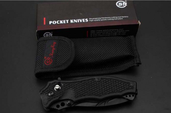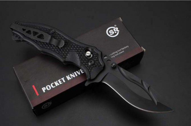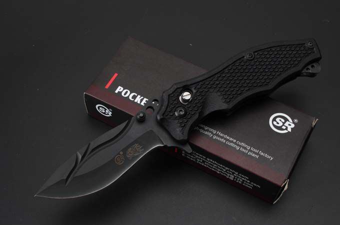 SR-B318折刀 全长:21.5 刃长:8.6 刃厚:0.4 刃宽:3 柄材:玻璃纤维 刃材:440 硬度:55 表面:黑钛处理,带背夹. 包装:原装高档纸盒 锁闭: 轴锁 其他:整刀经过数控CNC加工,采用精密特制的标 准件.