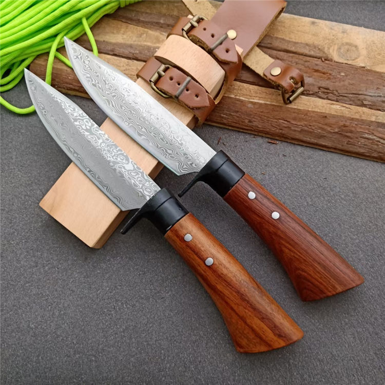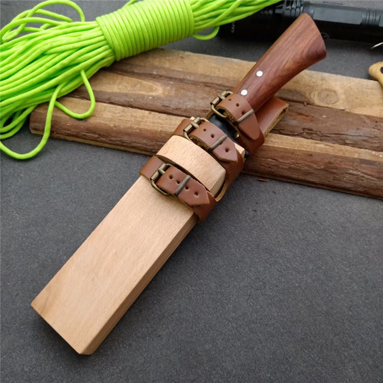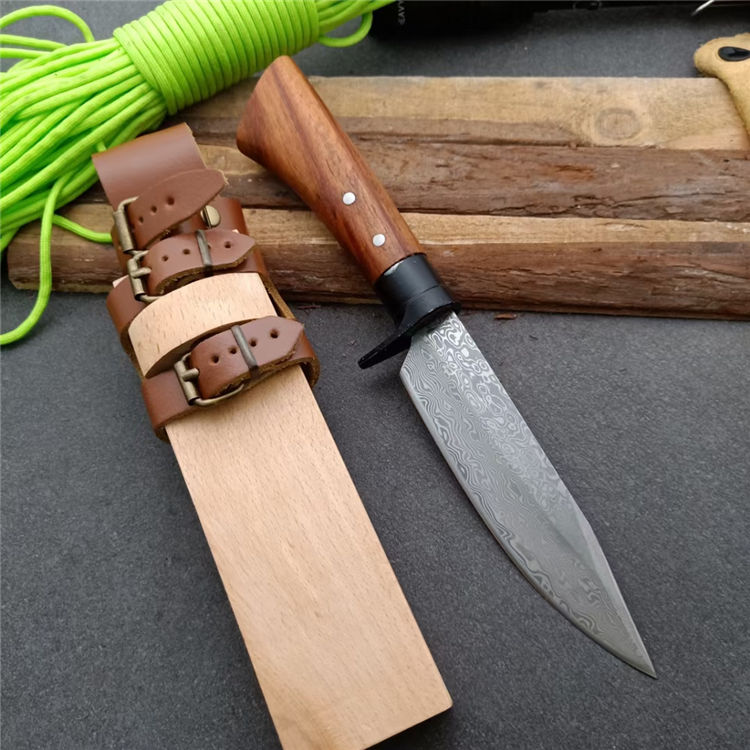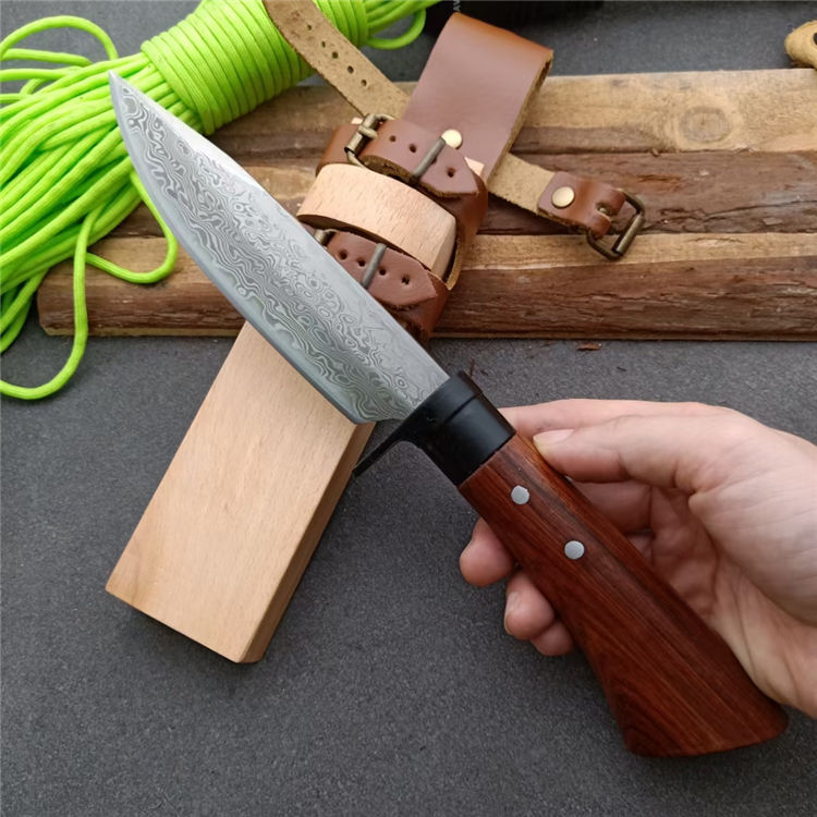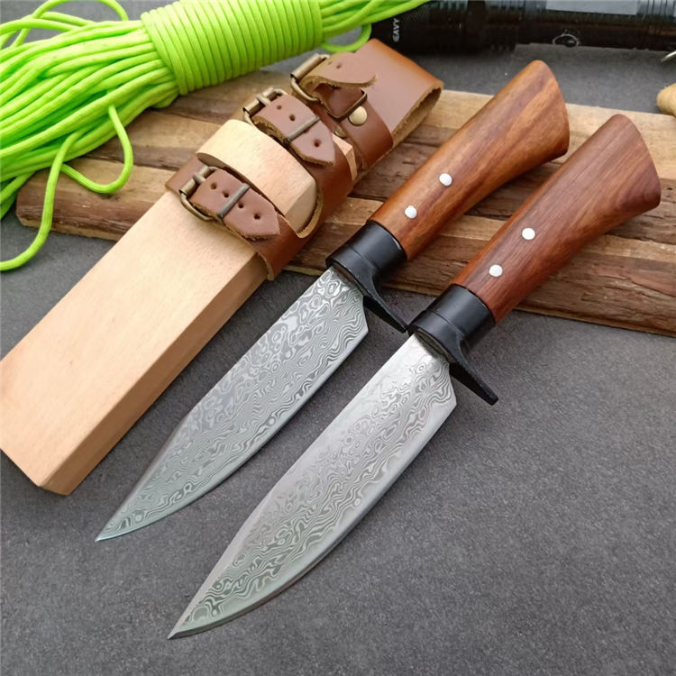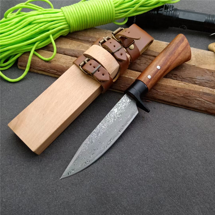全长:25.5 刃长:13 刃厚:0.5 刃材: 花纹锻钢 刀刃硬度: 59HRC 重量:400克 刀柄:原木 刀鞘:原木+真皮+铜扣