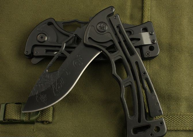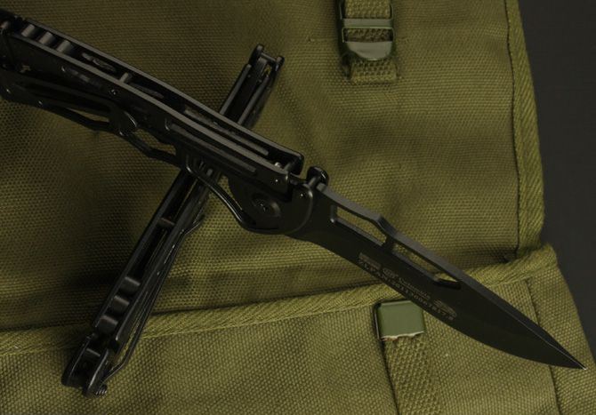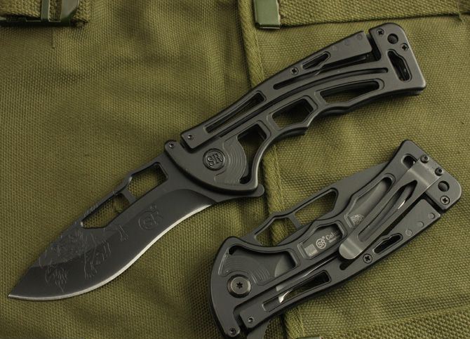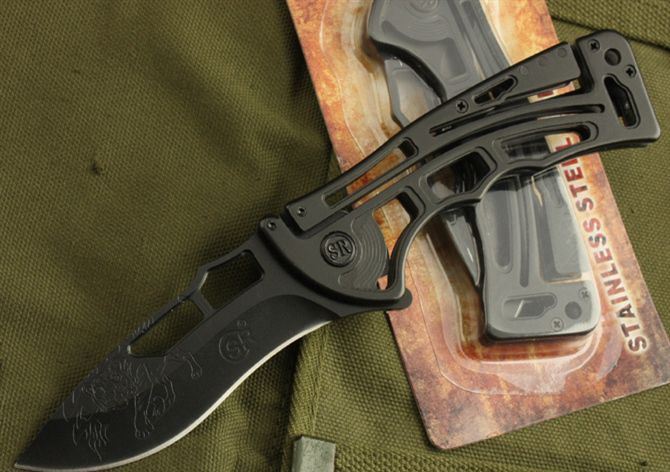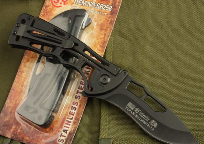 SR-258折刀 刃材:440 硬度: 56HRC 全长:21.5CM 刃长:8.7CM 刃厚: 0.25CM 刃宽:3CM (最宽处) 柄长: 12.5CM 涂层:氧化黑 柄材: 钢 重量:140克 锁定:新奇制尾