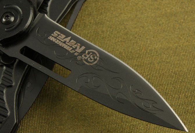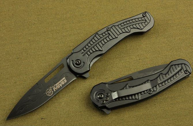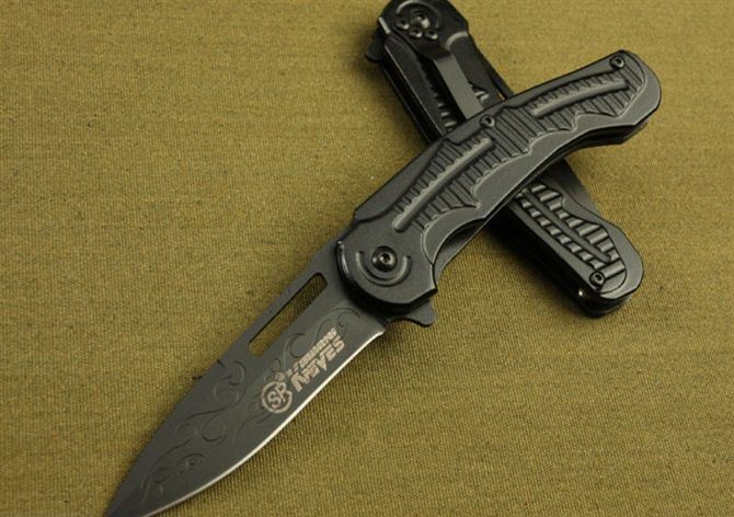 SR-B568折刀 刃材:440 硬度: 56HRC 全长:17.5CM 刃长:7.8CM 刃厚: 0.17CM 刃宽:2.2CM (最宽处) 柄长: 10CM 涂层:氧化黑 柄材: 铝 重量:60克 锁型:快开