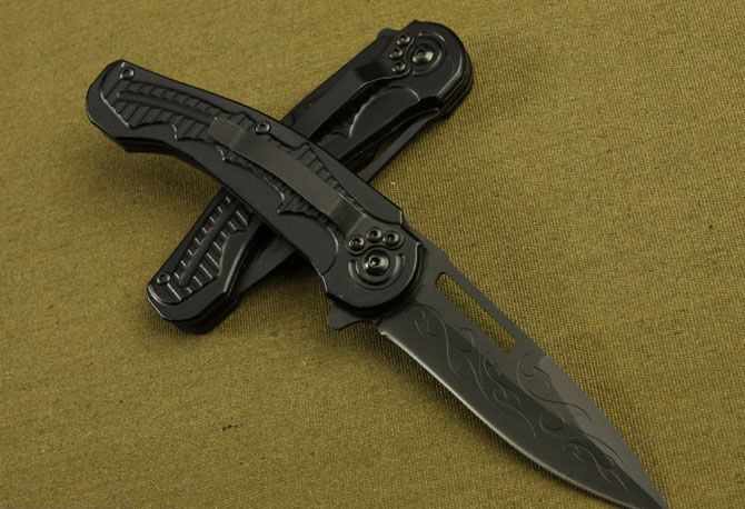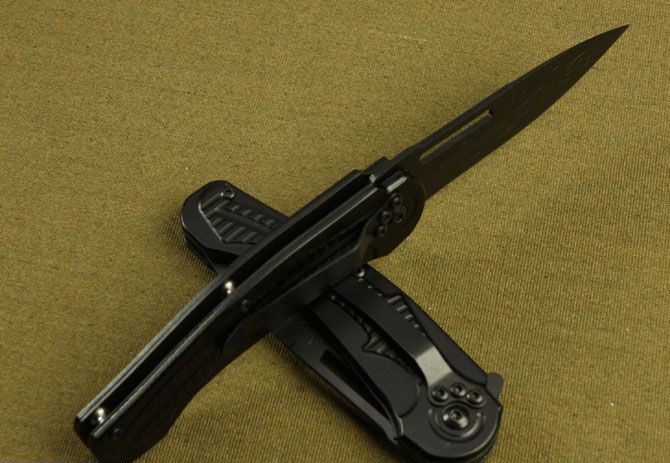 刃材:440 硬度: 56HRC 全长:17.5CM 刃长:7.8CM 刃厚: 0.17CM 刃宽:2.2CM (最宽处) 柄长: 10CM 涂层:氧化黑 柄材: 铝 重量:60克 锁型:快开