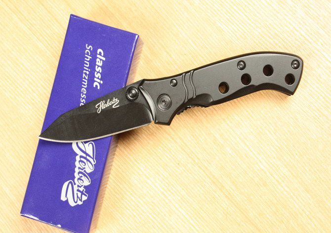 HEILEIT全钢精工小折 全 长: 16.5CM 刃 长: 6.5CM 刃 厚: 2.8MM 刃 材: 420 硬 度: 58HRC 重 量: 120G 表 面: 氧化黑 柄 材: 不锈钢 刀 鞘: 无 锁 闭: 线锁
