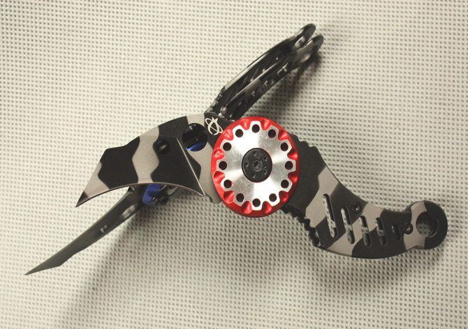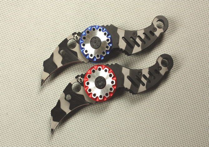 毛毛虫(双色) 刃材:440 硬度: 57HRC 全长:14.5CM 刃长:5.5CM 刃厚: 2.5CM 刃宽:2.5CM (最宽处) 柄长: 9.5CM 涂层:发黑 柄材: 全钢 重量:100克 锁定:线锁