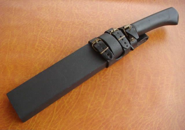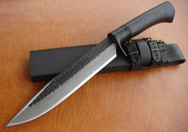 全长:36.5 刃长:21 刃厚:0.6 刃材: 高碳锻钢 刀刃硬度: 59HRC 重量:600克 表面:锻打氧化层 刀柄:原木(表面磨沙,增加防滑和手感) 刀鞘:原木(表面磨沙)+真皮+铜扣