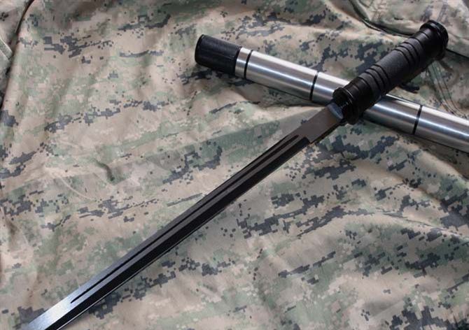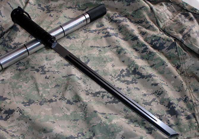 刃长: 36.5CM 长度:93CM 管径: 3.25CM 刀厚:0.4CM 刃宽: 2.2CM 重量: 800g 硬度: 56HRC