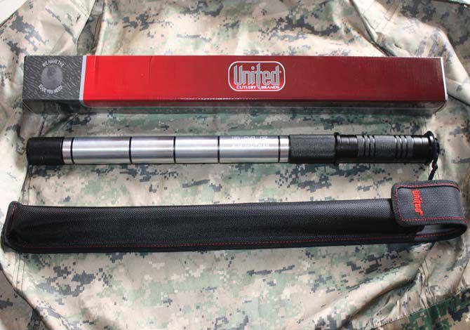 联合刀具第三代棍刀 (无灯) 刃长: 36.5CM 长度:93CM 管径: 3.25CM 刀厚:0.4CM 刃宽: 2.2CM 重量: 800g 硬度: 56HRC