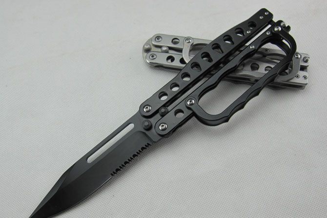 C29拳套大甩刀(黑版半齿) 全 长:28.0cm 刃 长:12.0cm 柄 长:15.0cm 刃 宽:3.2cm(最宽处) 刃 厚:2.8mm 刃 材:440 硬 度:56HRC 刀 柄:全钢 表 面:发黑 重 量:280.0克 备 注:带尼龙刀套