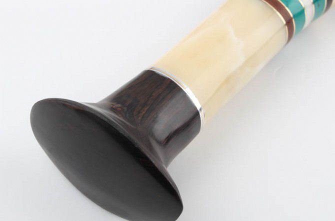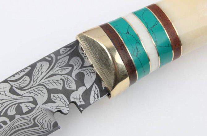 全 长:47.5cm 刀 刃:31cm 刃 厚:0.6cm 刃 宽:5CM 柄 长:15.5cm 柄 材:乌木+绿松石+铜头+兽骨 柄 厚:0.3cm 硬 度:57HRC 毛 重:1026克(含皮套) 表 面处理:纯手工锻造 结 构:龙骨结构,刀身贯穿刀柄,非常牢固 、皮鞘、纸盒。 产 地:国内代工