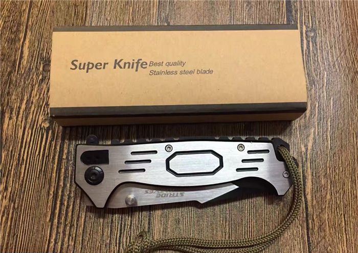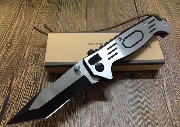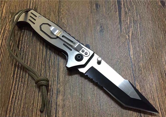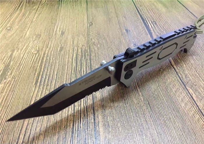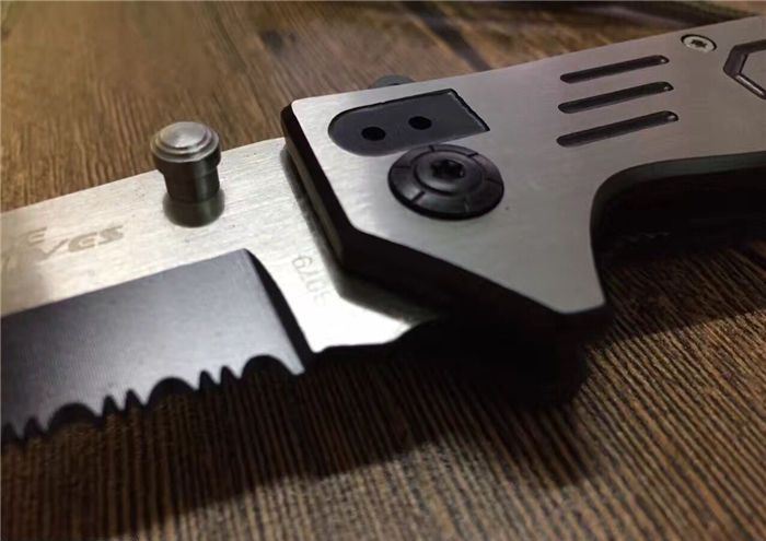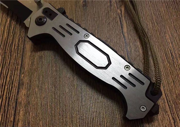 全长:21.5cm 刃长:9cm 刃宽:2.2cm 闭合:12cm 刃厚:0.28cm 钢材:440C 硬度:56HRC 净重:140g 柄材:全钢手工拉丝 锁型:齿轮助力 包装:彩纸盒