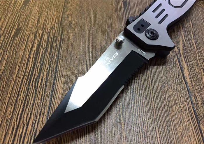灵猴079折刀 全长:21.5cm 刃长:9cm 刃宽:2.2cm 闭合:12cm 刃厚:0.28cm 钢材:440C 硬度:56HRC 净重:140g 柄材:全钢手工拉丝 锁型:齿轮助力 包装:彩纸盒