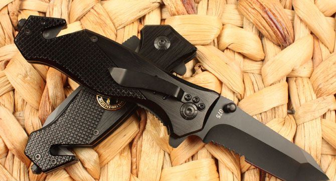 全长:20.5cm 刃长:8.7cm 刃宽:2.5cm 闭合:12cm 刃厚:0.28cm 钢材:440C 硬度:56HRC 净重:145g 表面:氧化黑 柄材:金属铝 锁型:线锁 包装:彩纸盒