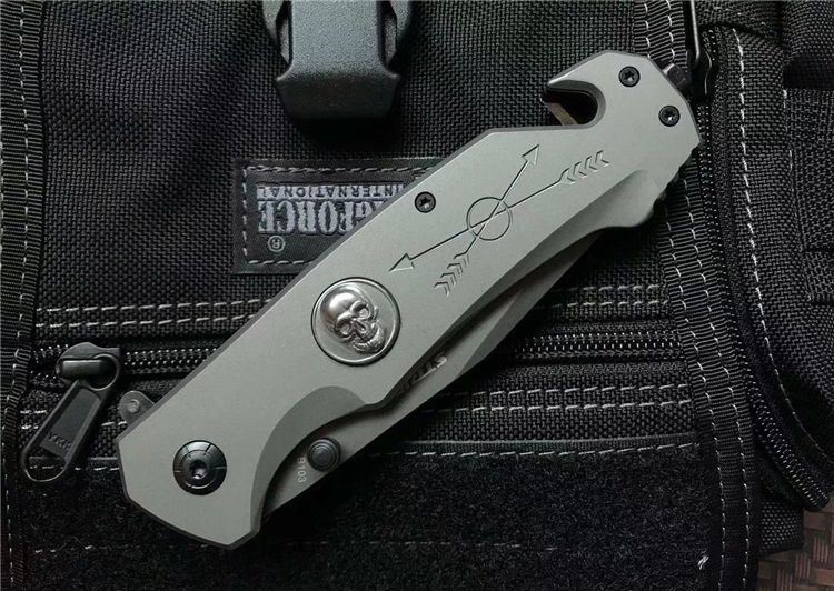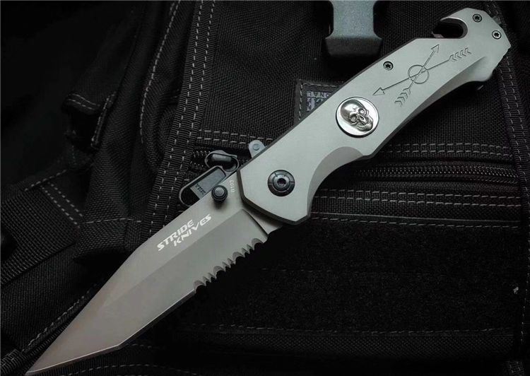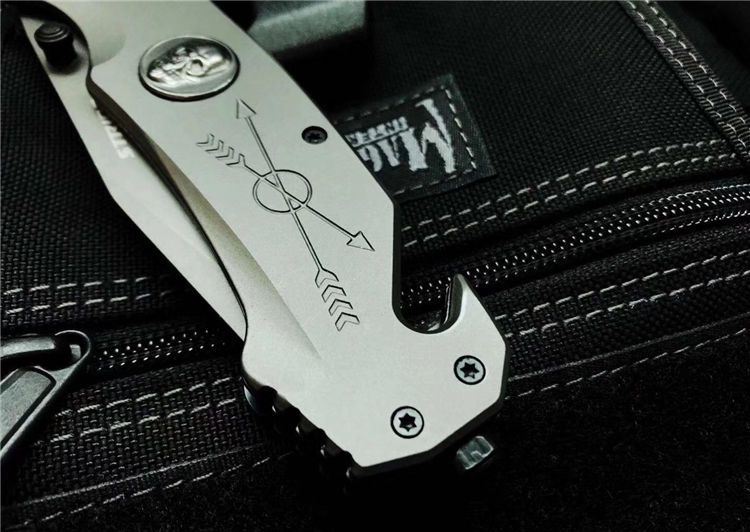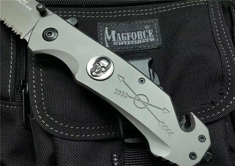 全长:23cm 刃长:9.5cm 刃宽:2.5cm 闭合:13cm 刃厚:0.33cm 钢材:440C 硬度:56HRC 净重:295g 表面:镀钛 柄材:全钢 锁型:快开 包装:纸盒