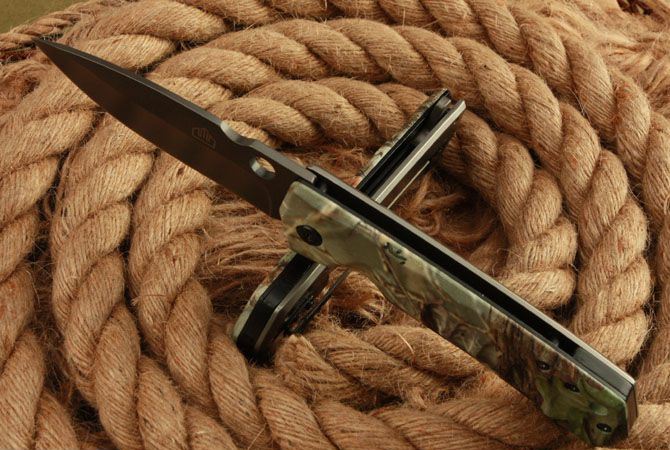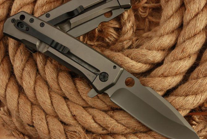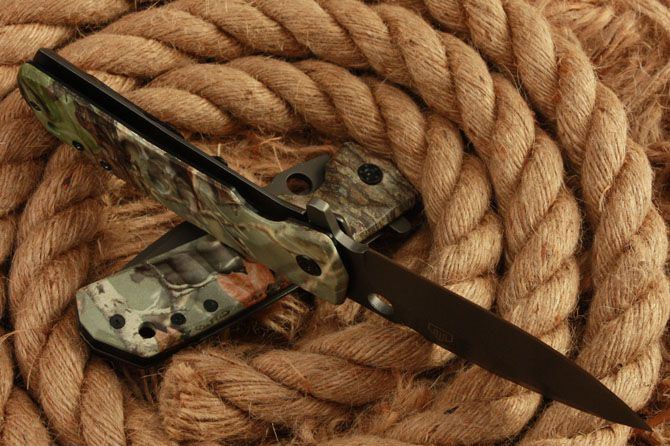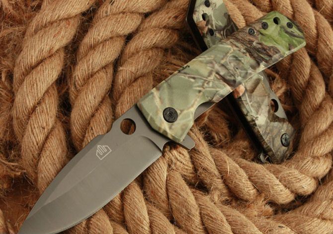 DA22战术折刀 全长:24cm 刃长:10.5cm 柄长:13cm 刃厚:0.36cm 刃宽: 3.3cm 刃材: 5Cr13MOV 柄材: 全钢+披履 硬度: 56HRC 重量:260克(含包装) 表面处理:镀钛 其他:彩盒