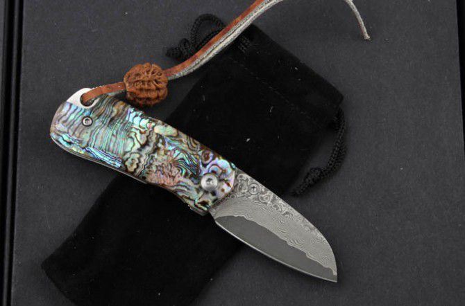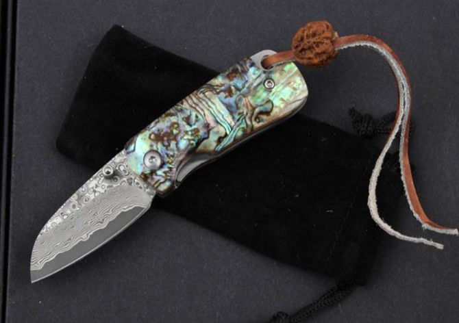 鲍贝掌上明珠大马士革折刀