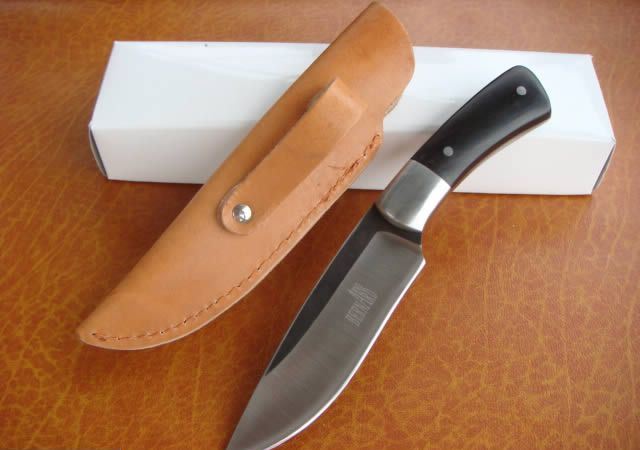 全 长: 21.5cm 刃 长: 11.5 刃 宽: 3.4cm(最宽处) 柄 长: 9.7cm 刃 厚: 0.48cm 刃 材: 高碳钢 硬 度: 58RHC 表 面: 锻打黑灰 工 艺:手工锻造 柄 材: 钢头+黑木 重 量: 300克(含套) 其 他:手工水磨,刃口锋利,可刮汗毛。一体龙骨结构,配优质牛皮刀套。