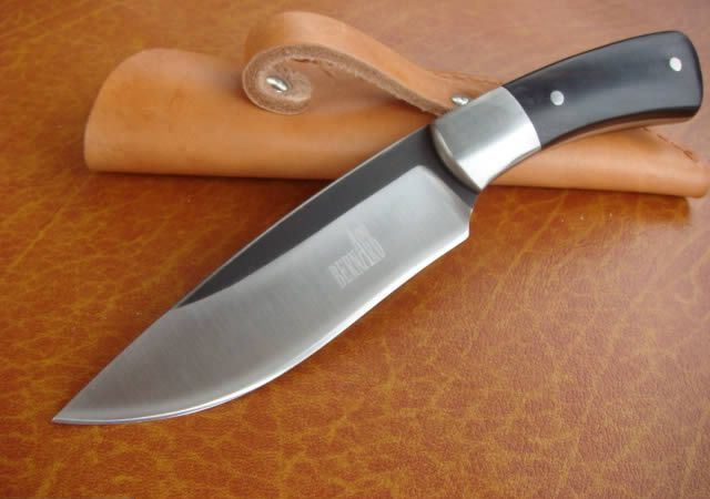 项作手工猎刀中号(白版) 全 长: 21.5cm 刃 长: 11.5 刃 宽: 3.4cm(最宽处) 柄 长: 9.7cm 刃 厚: 0.48cm 刃 材: 高碳钢 硬 度: 58RHC 表 面: 锻打黑灰 工 艺:手工锻造 柄 材: 钢头+黑木 重 量: 300克(含套) 其 他:手工水磨,刃口锋利,可刮汗毛。一体龙骨结构,配优质牛皮刀套。