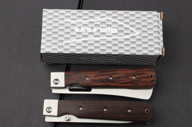 厨用折刀( 2 )平头全齿、尖头全刃 全 长:236mm 刃 长:109mm 柄 长:126mm 刃 宽:23mm 刃 厚:2.0mm 刃 材:3Cr13 重 量:152g(含包装) 硬 度:55HRC 表 面:沙光 柄 材:鸡翅木柄 锁 型:线锁 其 他:配纸盒