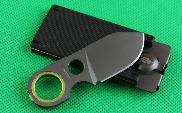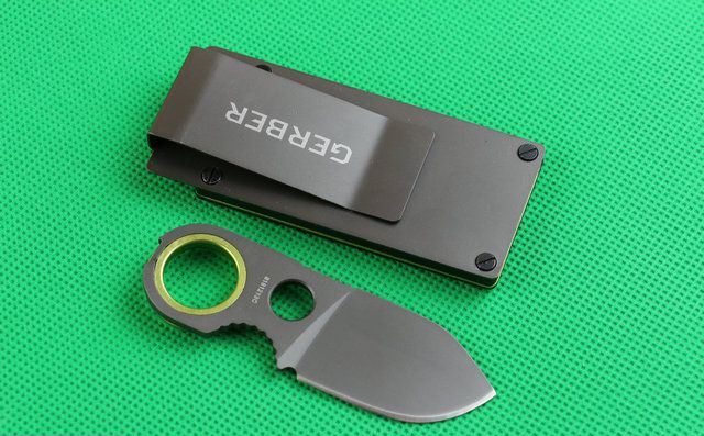 全 长: 9cm 刃 长: 4.2cm 刃 宽: 2.8cm(最宽处) 硬 度: 58HRC 刃 厚: 0.3cm 重 量: 120克(含包装) 刃 材: 5CR15MOV 表 面: 全钛 包 装:G10+钢套连一起,非常牢固。 其 他: 出口吸卡装,可以方便随身带。