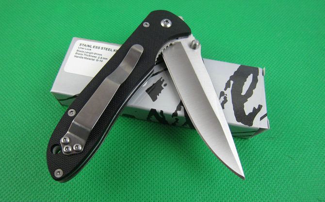 全 长: 20.3cm 刃 长: 8.6cm 刃 宽: 2.3cm(最宽处) 柄 长: 11.5cm 刃 材: 440 硬 度: 56HRC 表 面: 沙光 刃 厚: 0.3cm 柄 材: 全钢+G10柄 重 量: 120克(含包装) 包 装:原装纸盒 锁 闭: 侧锁 其 他:带腰夹