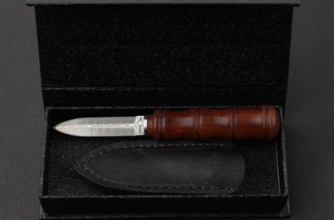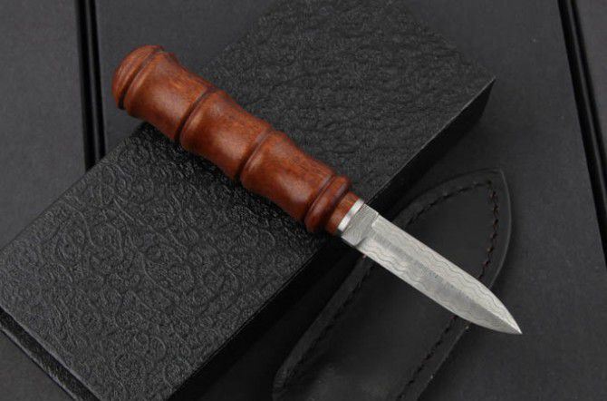 全 长:145mm 刃 长:60mm 柄 长:85mm 刃 宽:13mm 刃 厚:2mm 刃 材:大马士革 重 量:122g(含包装) 硬 度:58HRC 表 面:钢本色 柄 材:黄檀木 其 他:配牛皮套