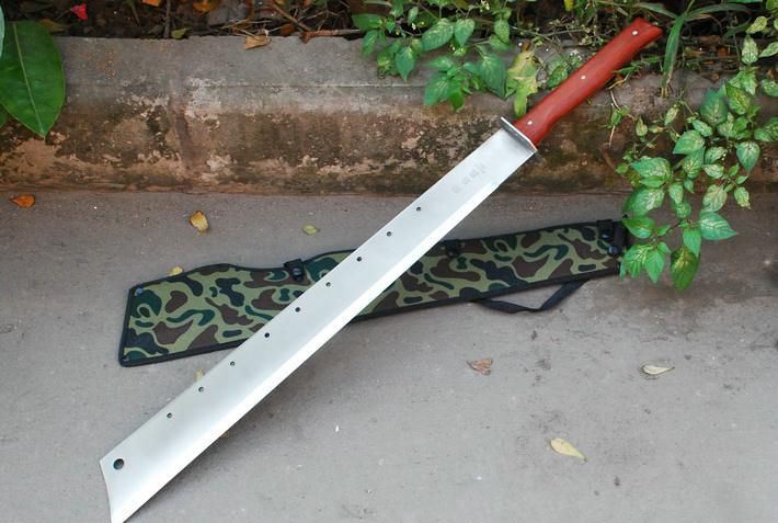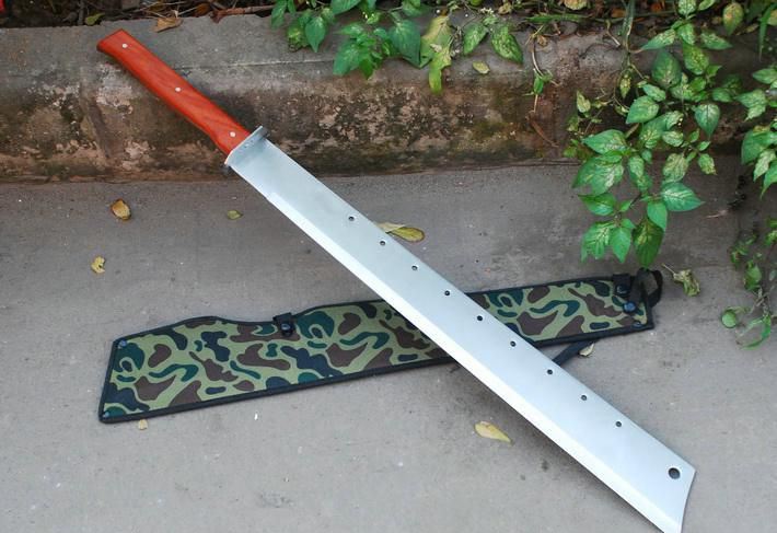 平头开山王 全 长: 77.5CM 刃 长: 58CM 刃 厚: 0.3CM 刃 材: 440A 硬 度: 56HRC 表 面: 抛光 柄 材: 彩木 刀 鞘: 尼龙套 商品重量:1100.000 克(g)