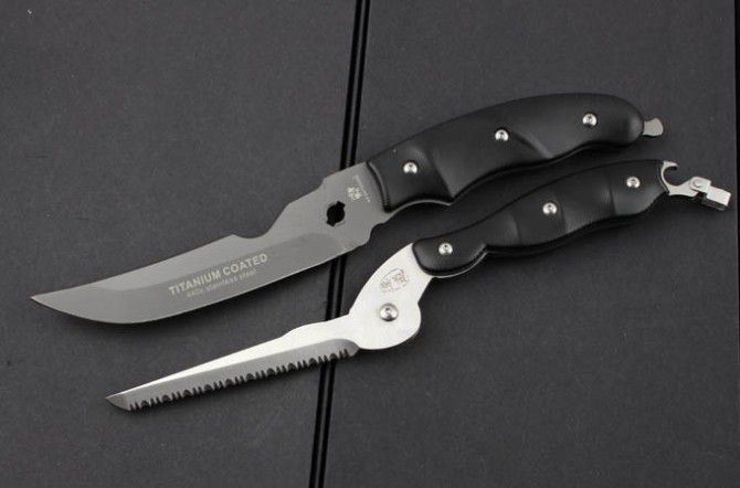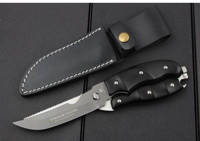 全 长:25.5cm 柄 长:12cm 刃 材: 7Cr17 柄 材: 全钢+G10 硬 度: 58HRC 重 量:466克(含包装) 表 面处理:黑钛 锁 型:弹力 可拆