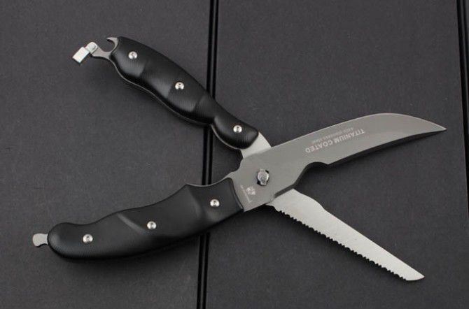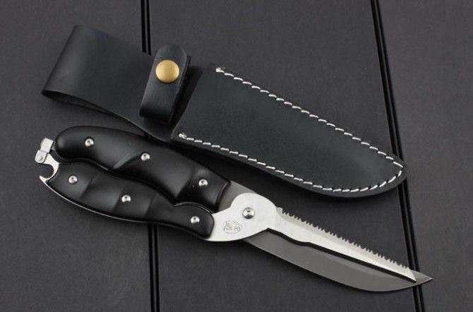 汉道-多用鸡骨剪 全 长:25.5cm 柄 长:12cm 刃 材: 7Cr17 柄 材: 全钢+G10 硬 度: 58HRC 重 量:466克(含包装) 表 面处理:黑钛 锁 型:弹力 可拆