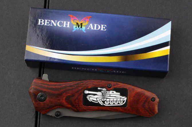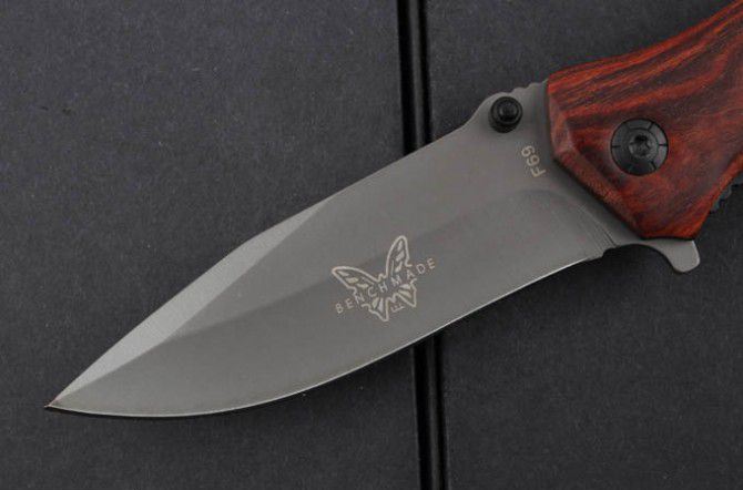 蝴蝶F69快开折刀 全 长:20.5mm 刃 长:88mm 柄 长:118mm 刃 宽:27mm 刃 厚:3.0mm 刃 材:3Cr13 重 量:145g(含包装) 硬 度:55HRC 表 面:镀钛 柄 材:进口酸枝木 锁 型:线锁 其 他:配彩纸盒