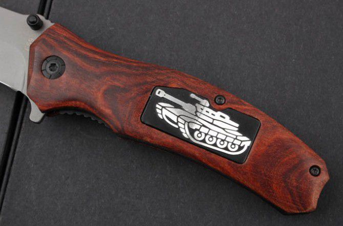 全 长:20.5mm 刃 长:88mm 柄 长:118mm 刃 宽:27mm 刃 厚:3.0mm 刃 材:3Cr13 重 量:145g(含包装) 硬 度:55HRC 表 面:镀钛 柄 材:进口酸枝木 锁 型:线锁 其 他:配彩纸盒