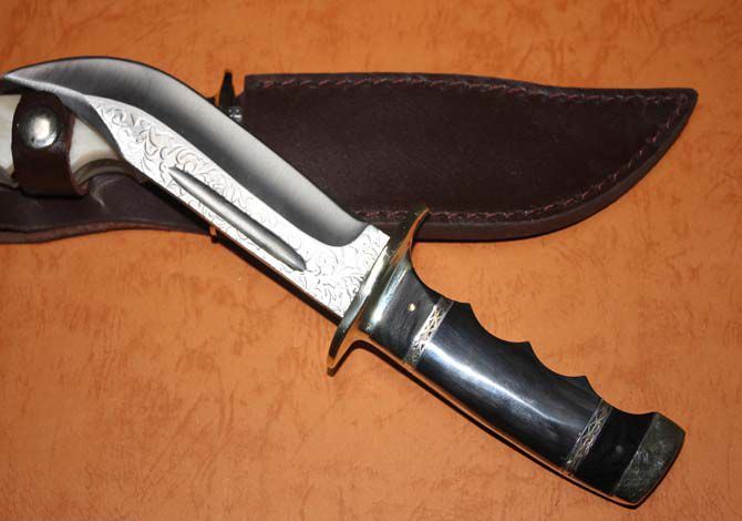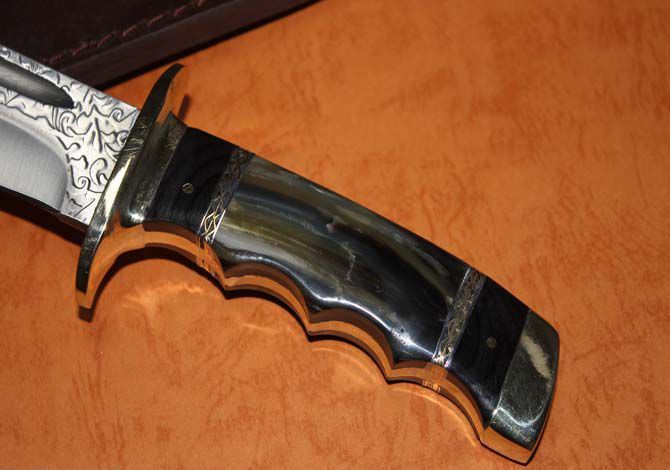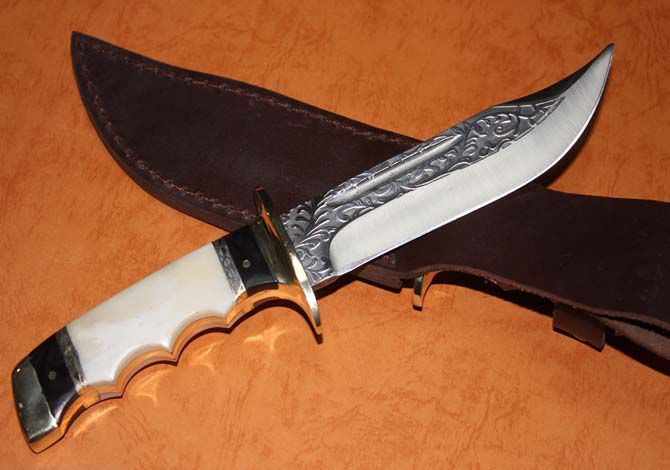 锻花钢鸳鸯小猎刀(白兽骨柄、黑兽骨柄)