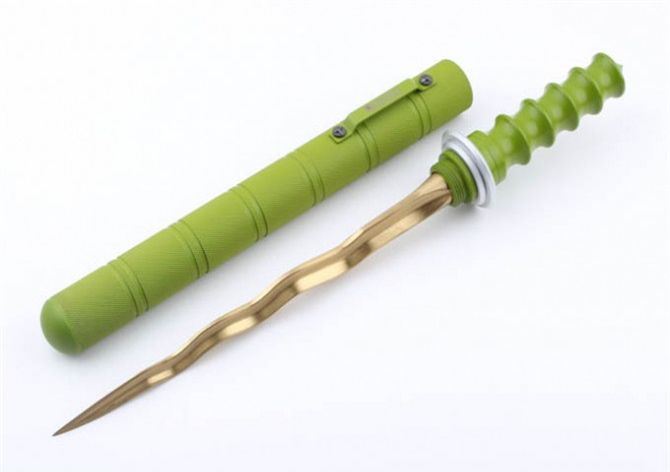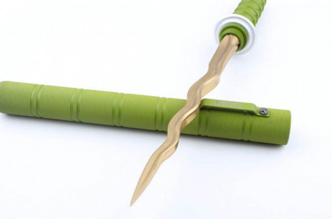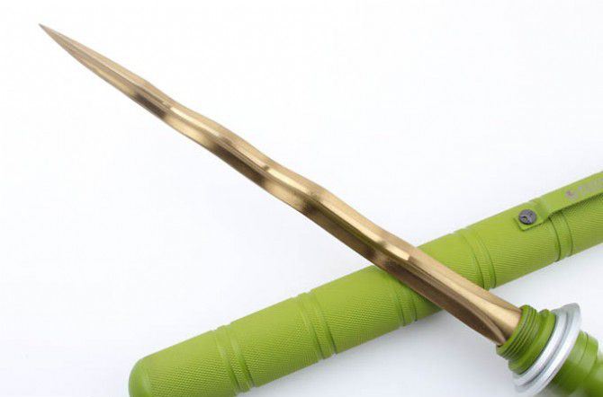 微技术Jagdkommando 特战金蛇三棱(带圆托) 全 长:39cm 刃 长:26cm 柄 长:13cm 闭 合:41cm 刀 型:三棱刺 柄 材:铝合金 刀 鞘: 铝合金 净 重:700g 毛 重:1250g