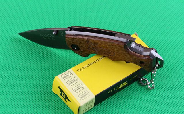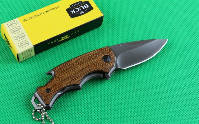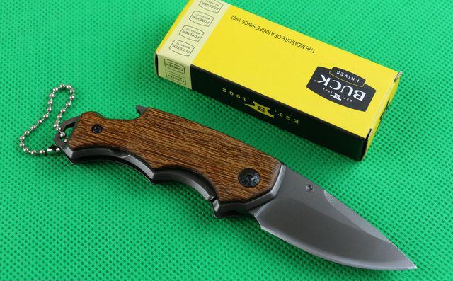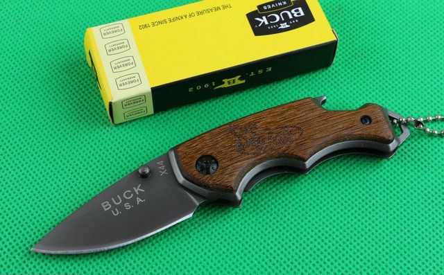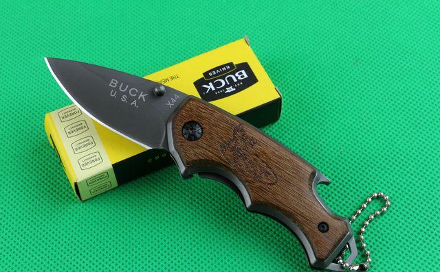 巴克X44折刀(带开瓶器) 全 长:145mm 刃 长:52mm 柄 长:90mm 刃 宽:26mm 刃 厚:2.8mm 刃 材;440 重 量:100(含包装) 硬 度:57HRC 表 面:镀钛 柄 材:花梨 锁 型:线锁 其 他:配彩盒