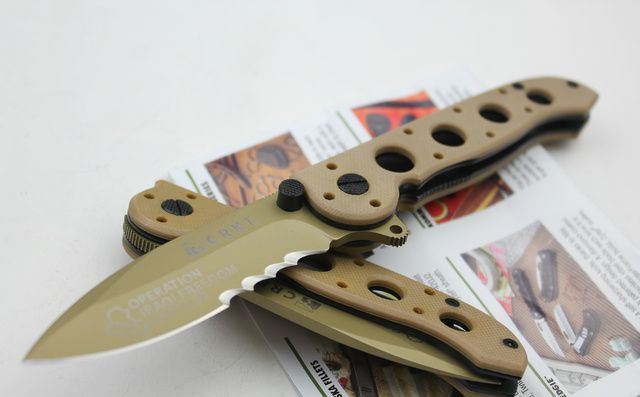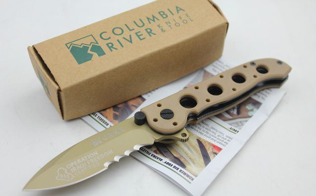 哥伦比亚M21-12DGI折刀(沙漠色) 全 长:18.6cm 刃 长:7.5cm 柄 长:10.5cm 刃 宽:2.2cm(最宽处) 刃 厚:3.0mm 刃 材:440C 硬 度:57HRC 刀 柄:G10(新型战术沙漠色) 表 面:镀钛金 锁定方式:线锁带保险装置 重 量:100.0克 备 注:带背夹,原品包装 关闭方式:按下刀柄背上端的保险,同时打开线锁,最后关闭刀刃。