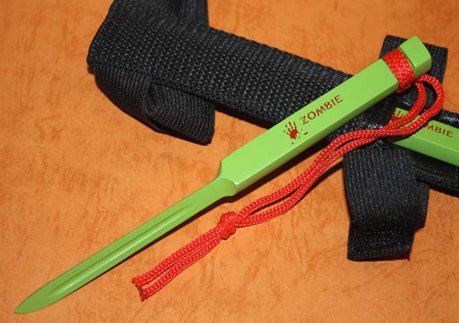 战俘箭(绿色) 总长:17.8CM材料 一体不锈钢 硬度:58HRC 全钢压铸一次成型 三棱小刃,三血槽,配有的刀鞘很方便绑在胳膊上和腿上,极具隐蔽性,全不锈钢制造!防身最佳选择。