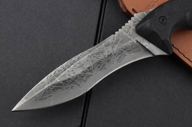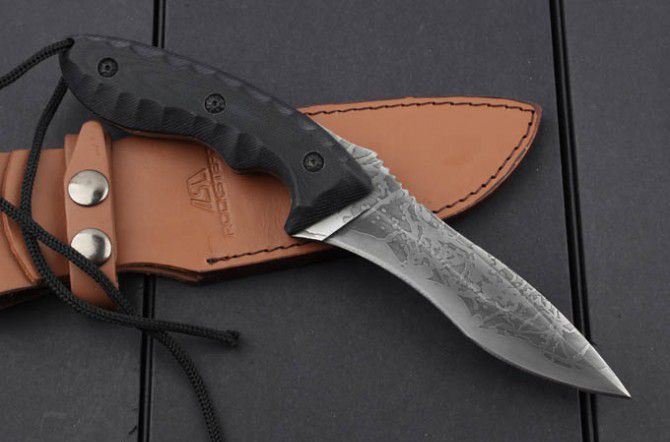 全 长:260mm 刃 长:130mm 柄 长:130mm 刃 宽:30mm 刃 厚:5.9mm 刃 材:5Cr13Mov 重 量:885g(含包装) 硬 度:56HRC 表 面:腐蚀 柄 材:G10 锁 型:定锁 其 他:配黑色牛皮套